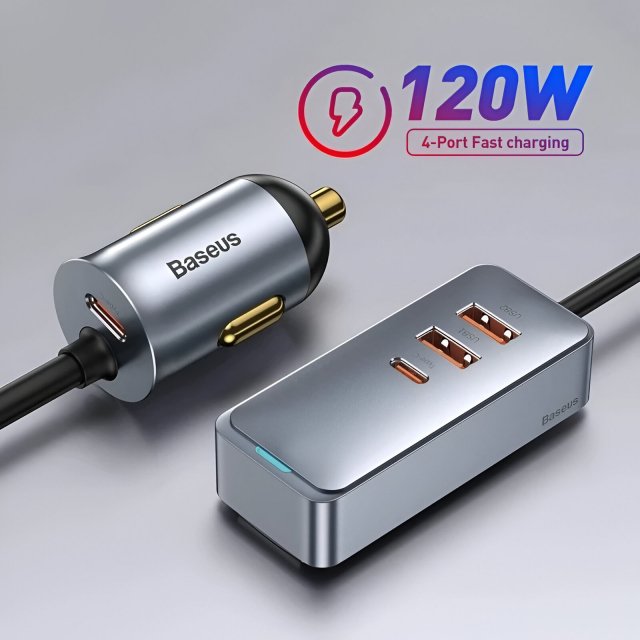 Tired of fighting over charging ports in the car? This 120W fast car charger turns your vehicle into a powerful charging hub for everyone inside. With its smart extension cord and multiple ports, it reaches the back seat easily, keeps your dashboard clutter-free, and delivers ultra-fast power to your phone, tablet, GPS, or earbuds. Whether you drive a sedan, truck, or SUV, this charger fits perfectly into any 12V–24V vehicle and blends in with a clean, hidden design.