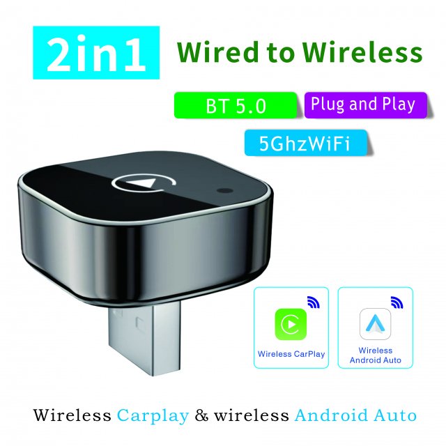 • Converts wired CarPlay and Android Auto into wireless